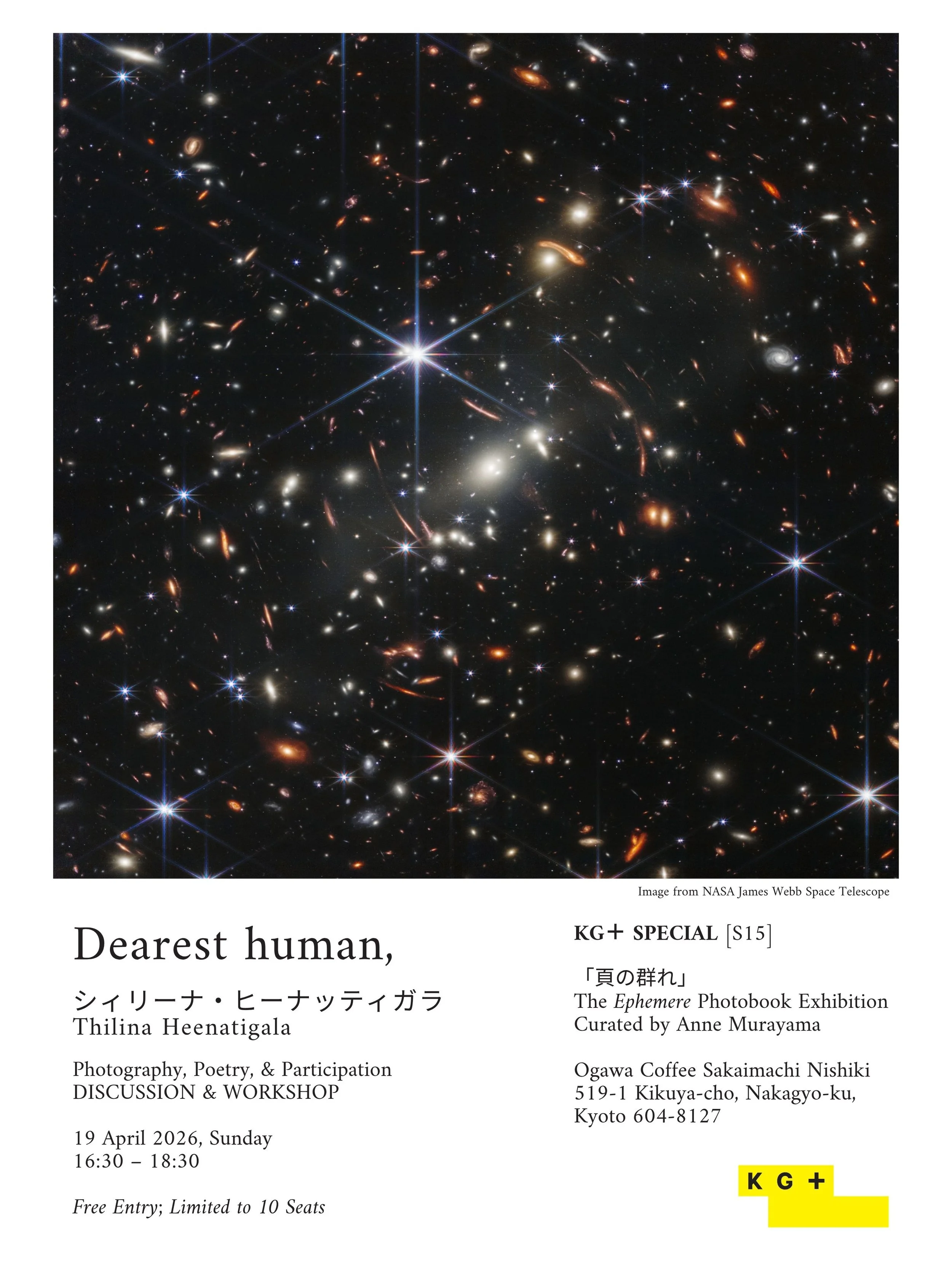 Join Thilinah for an intimate session of conversation, poetry and writing. Framed by the idea of 'Dearest human,'—a quiet address to anyone, across distance and experience—the session reflects on writing as a way of reaching out and holding onto fleeting moments. In the first hour, he shares selected poems and reflects on writing across places and moments. In the second hour, participants are invited to write alongside the artist in a guided workshop, developing a short poem of their own in response to a deep-sky image—reflecting on distance, connection and what lies just beyond reach, in a quiet sense of mono no aware.