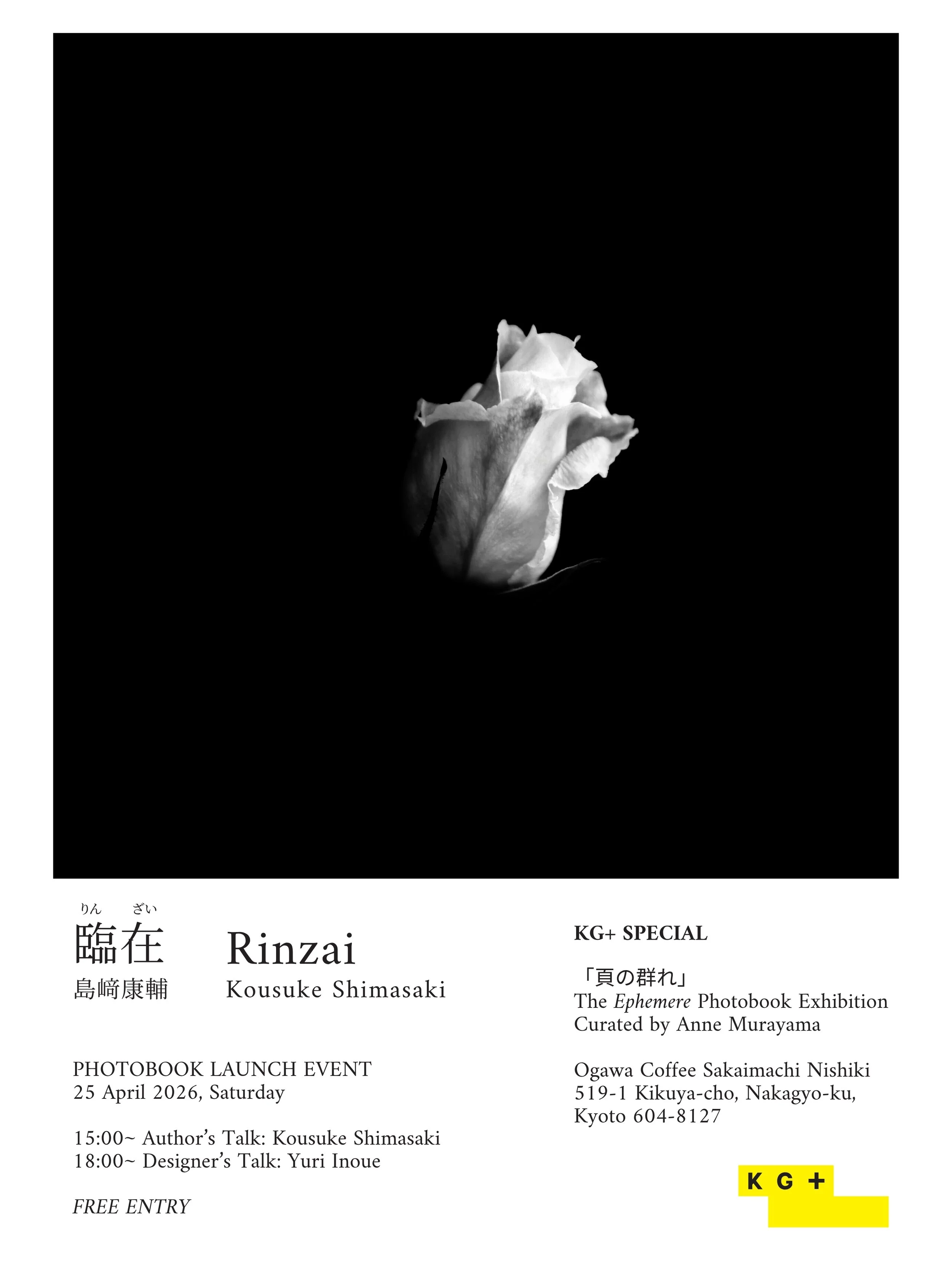 This special two-part program celebrates the launch of Kousuke Shimasaki's new photobook, "Rinzai," exploring the work from the distinct perspectives of both the artist and the designer.